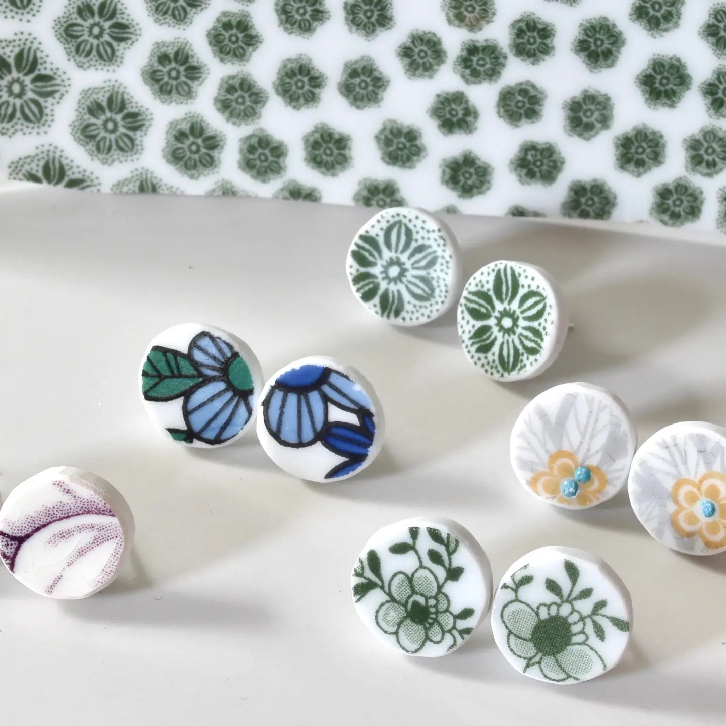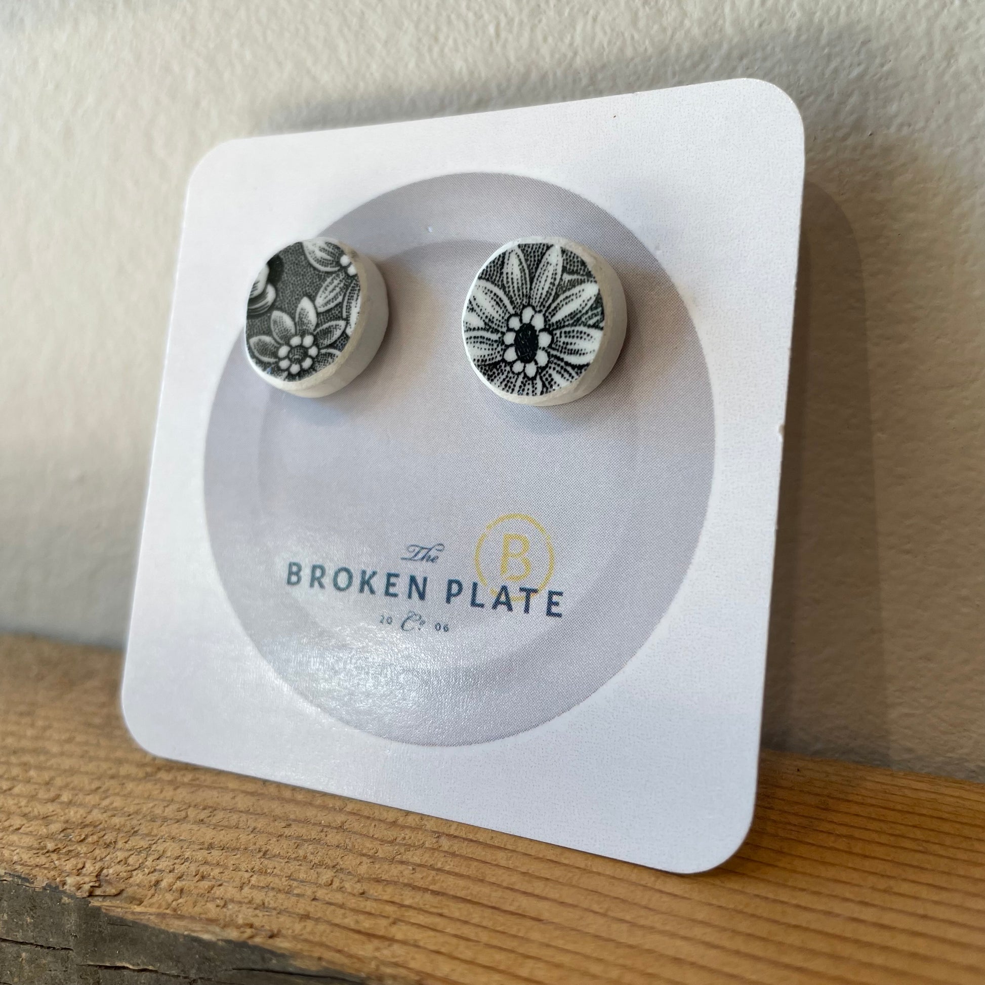 These playful Broken Plate Stud Earrings showcase a unique 12mm recycled china shard perched on a sterling silver post. Each earring brings a touch of eco-friendly charm and a story to your style, turning what was once broken into a dazzling statement. Perfect for adding a bit of whimsy and sustainability to any outfit!