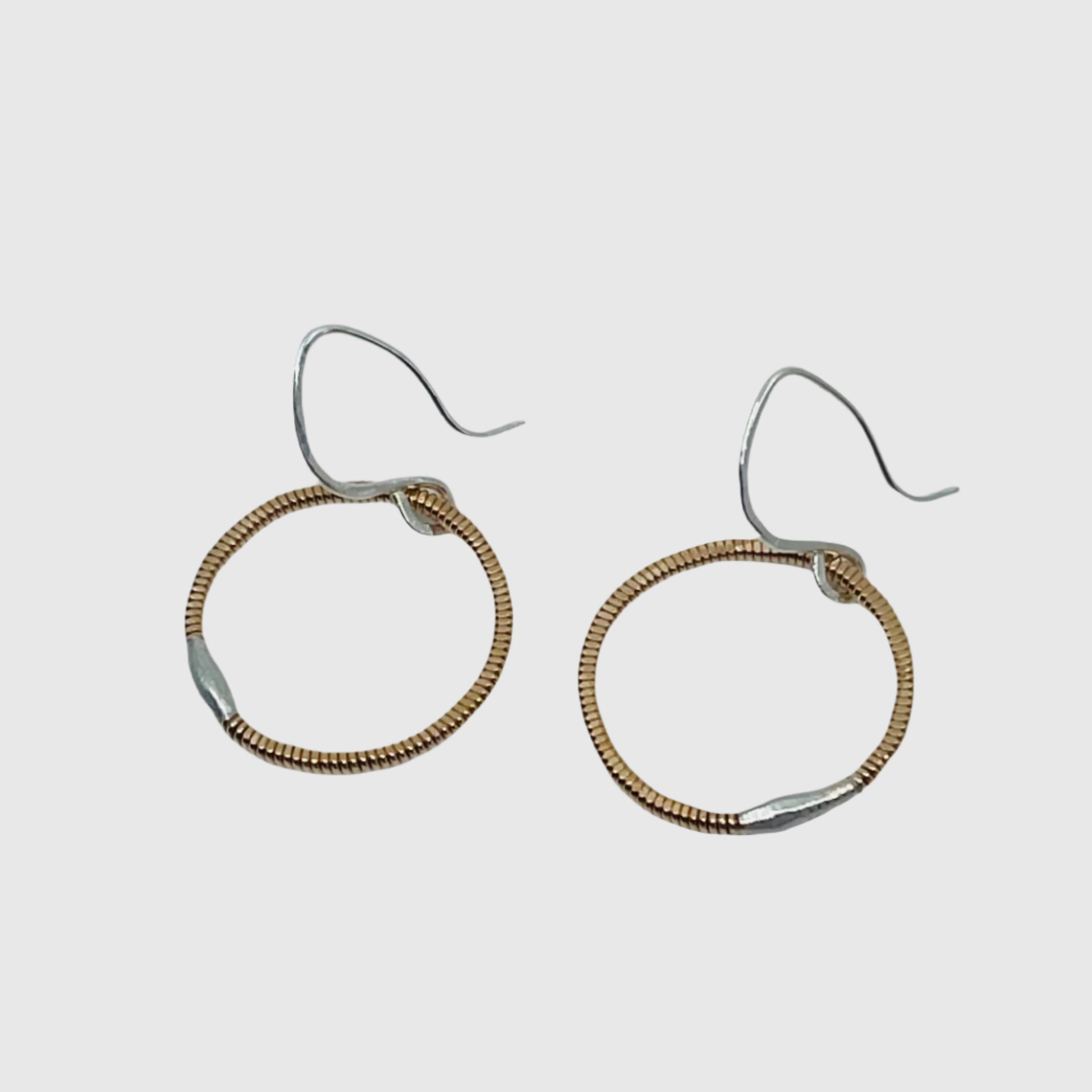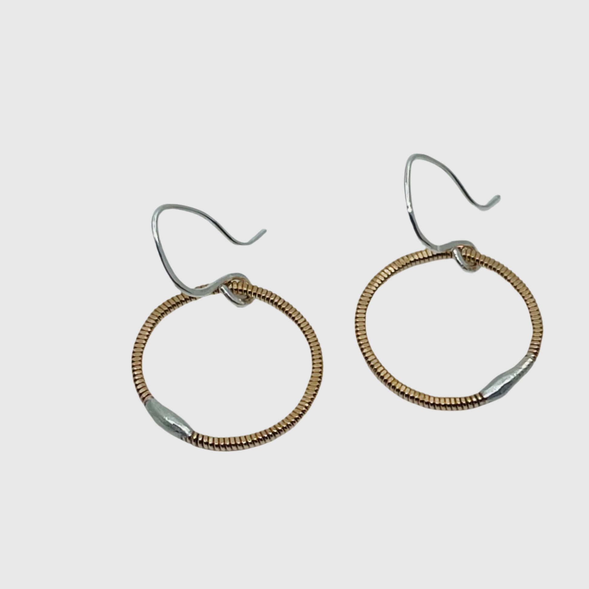 Get ready to totally rock your ensemble with these not-so-heavy-metal earrings! Handcrafted from discarded guitar strings, and designed to add a touch of eco-friendly elegance to your look. Perfect for music lovers and fashionistas alike, these earrings will surely be your new favorite accessory!