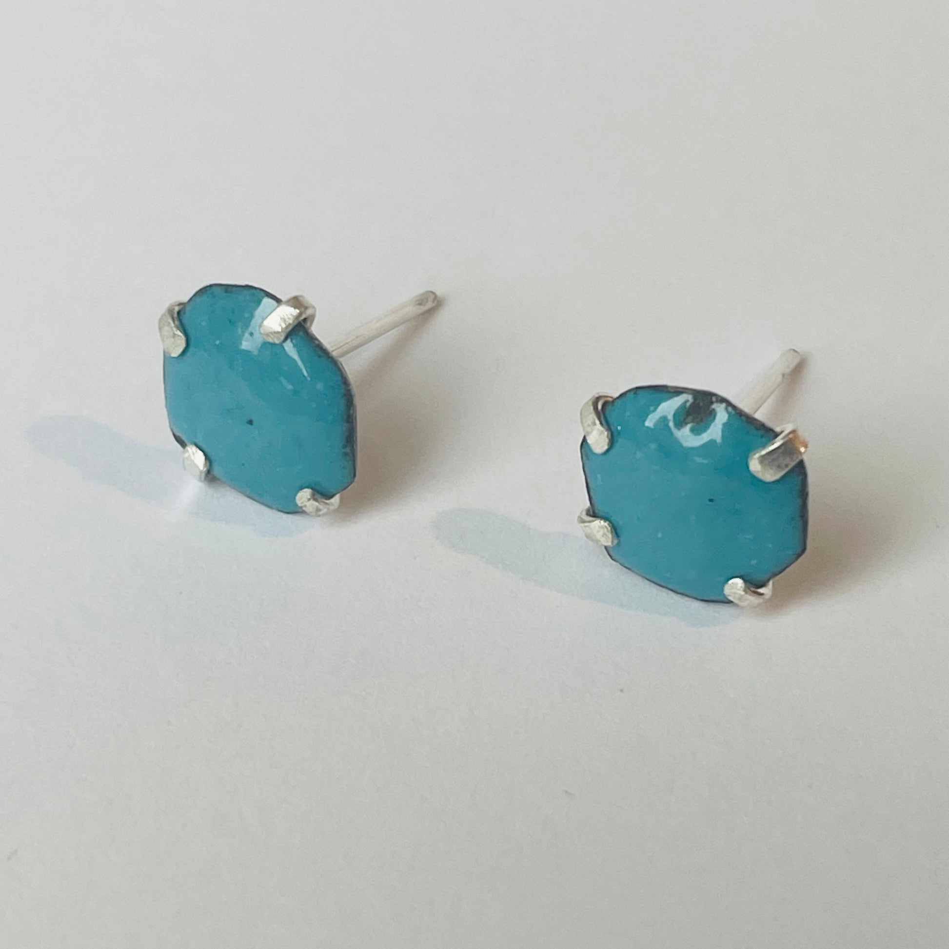 These small post earrings add a touch of bright color without overwhelming. I enamel small pieces of reclaimed steel and set them in handmade recycled sterling silver posts with a prong setting. Also includes sterling silver earring backs.