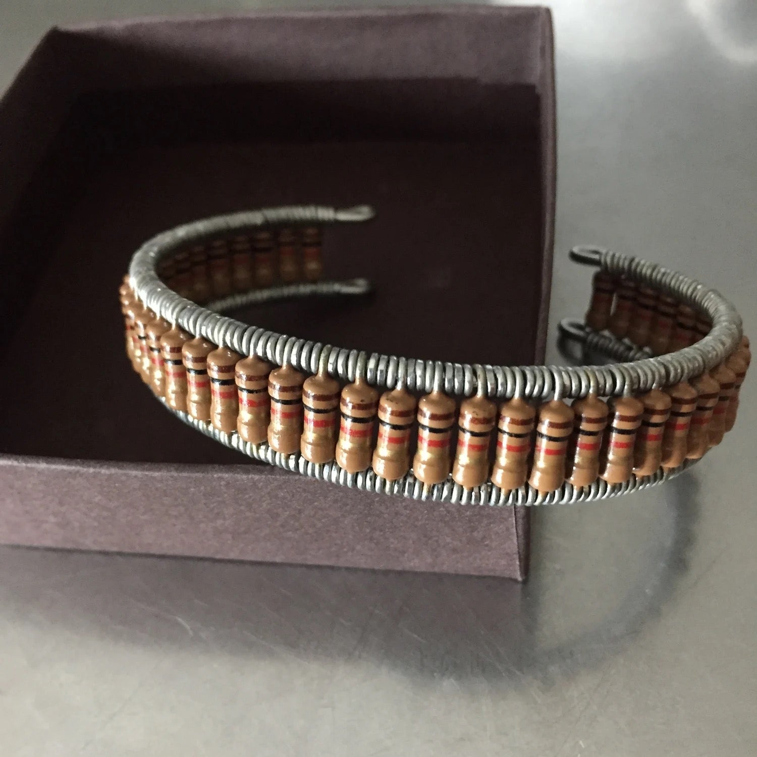 I cannot RESIST the millions of color combinations in all these resistors, transistors, and diodes. Also, anyone who knows how to count the stripes on them cannot resist telling me how many ohms a bracelet can resist. I'm not sure about that, but I am often counting them as they are wound one by one onto stainless steel wire or snipped and looped to be attached side by side.