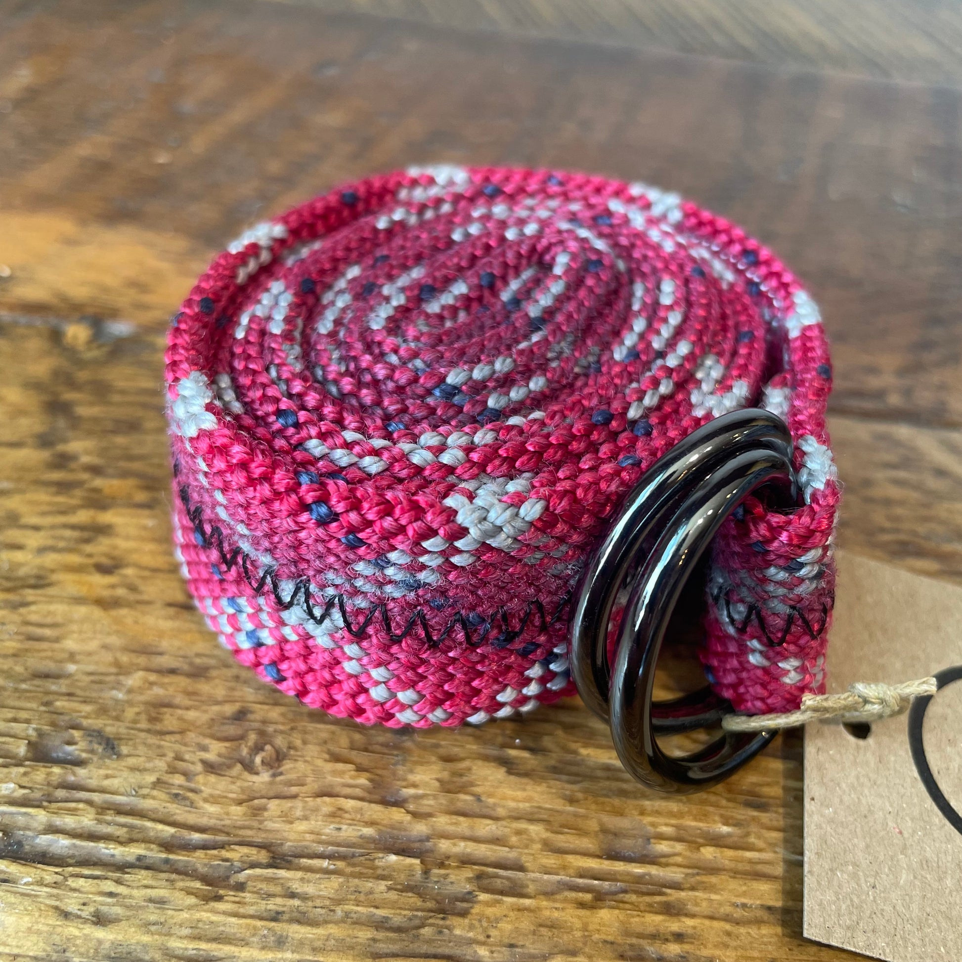 These belts are made out of retired climbing rope. Climbing ropes are only considered safe to climb on for about a year, so they typically still look brand new when they are thrown out. We collect these ropes that would otherwise be thrown out from climbers all around the country in order to give them a new life as belts.