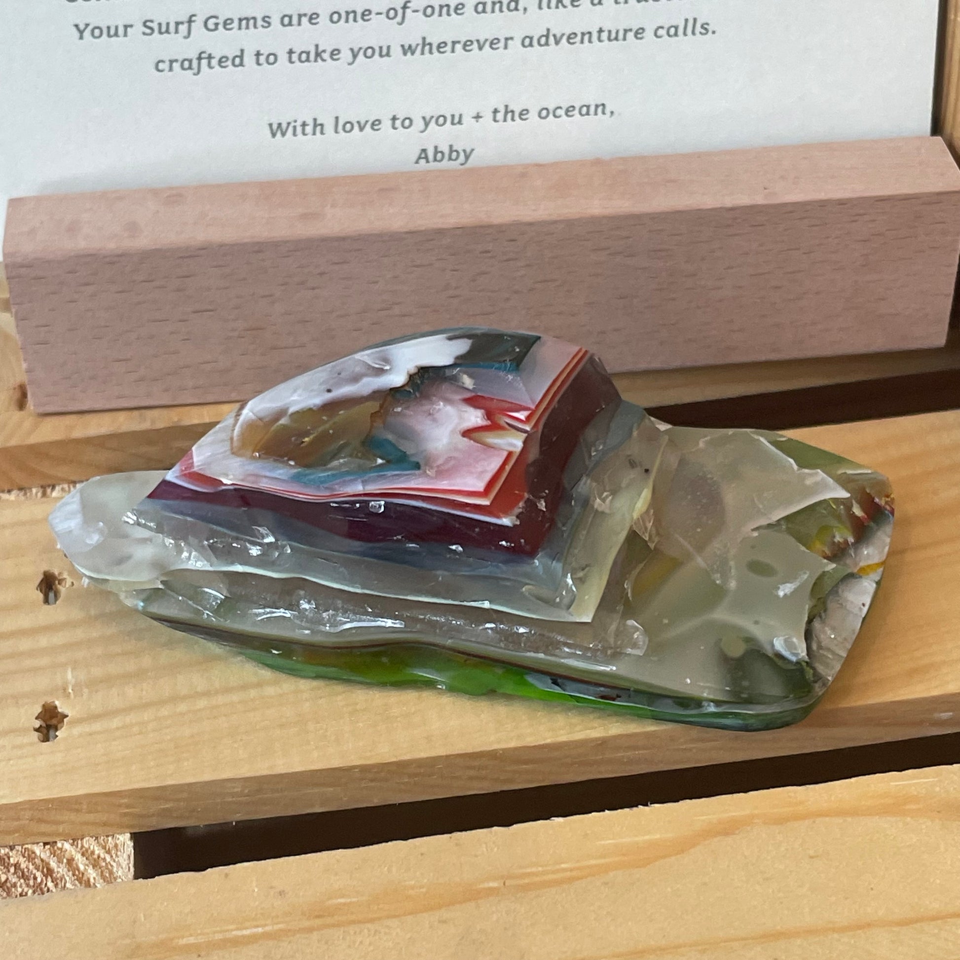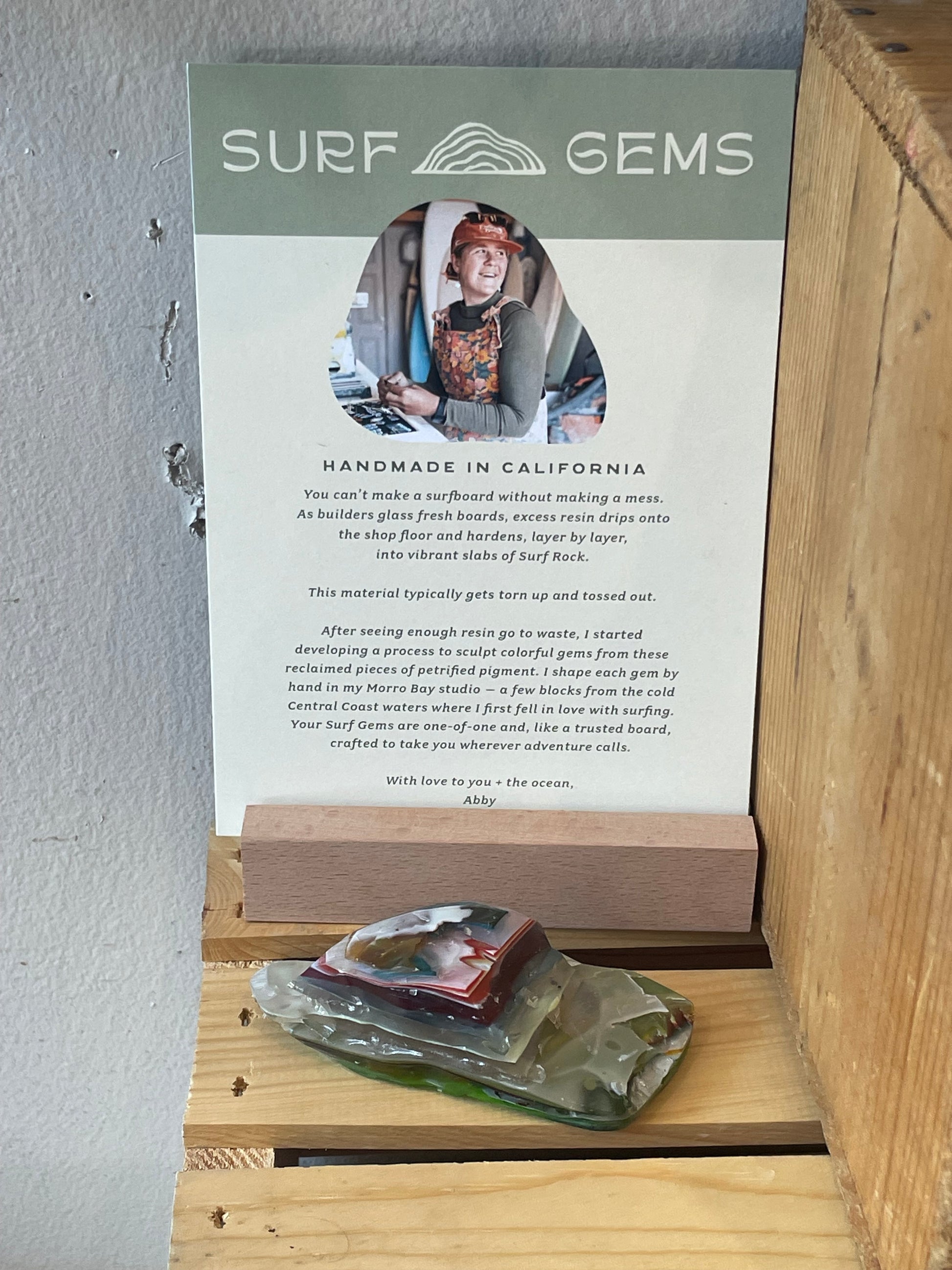 Unique and beautiful jewelry – handmade out of upcycled resin waste from the process of glassing surfboards. Surf Gems artfully display the vibrant layers and colorful swirls of resin that naturally accumulate on the floor in glassing shops.
